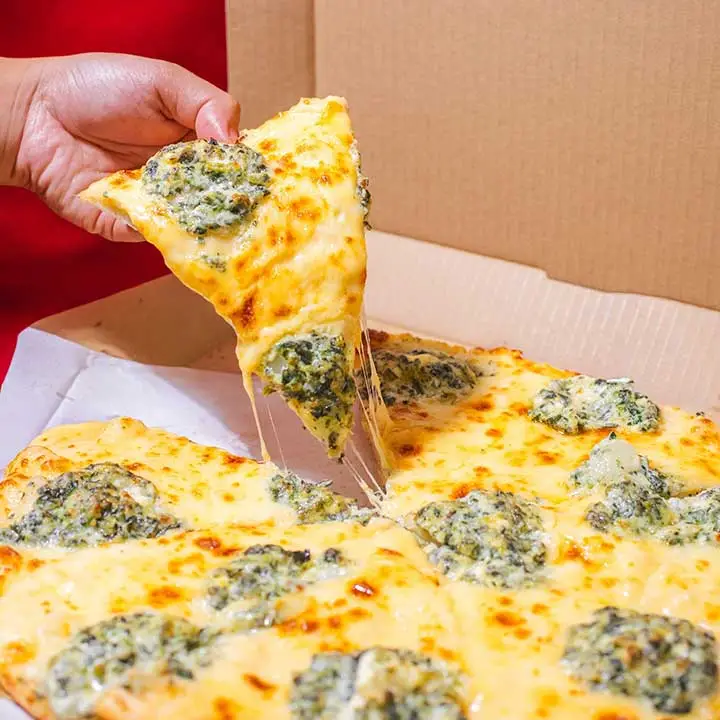 Taste the best-selling Creamy Spinach Dip Pizza, made fresh and loaded with cheesy goodness. Visit now at the Upper Ground Level of Versailles Town Plaza inside Versailles Alabang Village, Daang Hari Road, Las Piñas City.